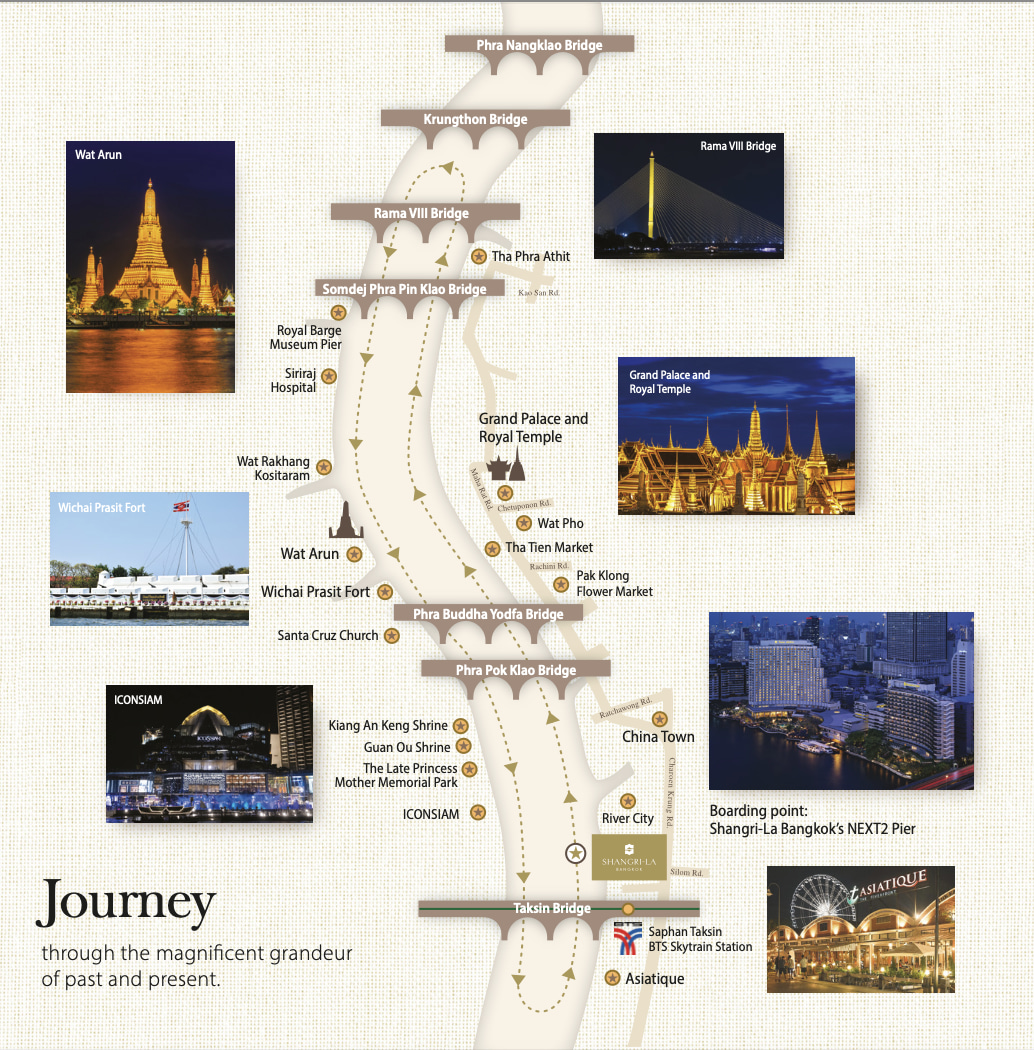 ## Meet-up information - Arrive at the meet-up location 15 minutes before the scheduled activity time - Latecomers or no-shows can't be refunded - Please look for a sign to check-in, there will be hotel staff waiting for you to guide you - You can board the boat after check-in. You may take photos and order drinking water upon boarding **Check-in at Restaurant Reservation Desk, 2nd Floor, Lobby Area** - Time: 16:30 - Address: NEXT2 Pier, Shangri-La Hotel, Bangkok 89 Soi Wat Suan Plu, New Road, Bangrak, Bangkok,10500. - Please refer to the map for assistance