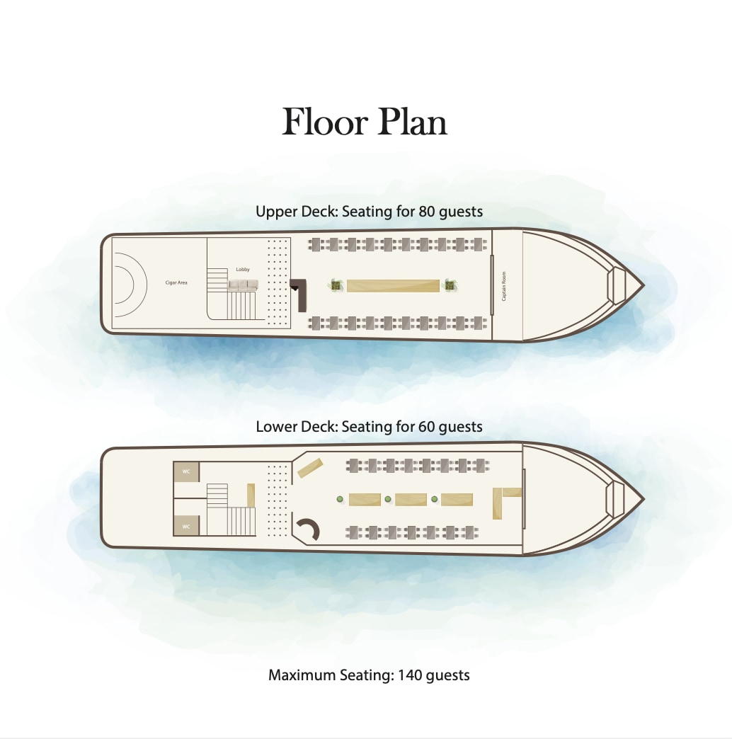 ## What's included - Admission to: Horizon Pre-Dinner Cocktail Cruise for 2 People - Snacks - Cocktails - 90-minute cruise - Pipe-in Music - Cruise Route - Floor Plan - Set for 2 persons !Set for 2 persons - Set for 4 persons !Set for 4 persons